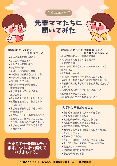 保護者の皆さんが少しでも安心して入学に向けて準備をして頂けたら幸いです。